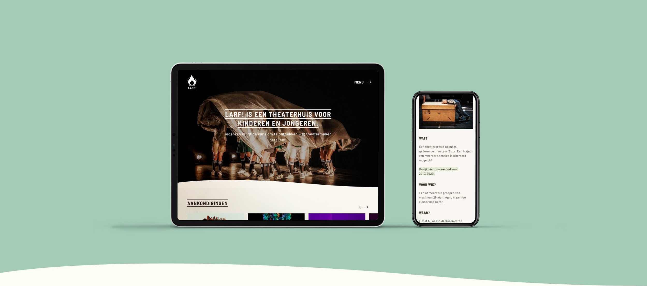 Een platform ontwikkelen dat de lading dekt voor alles wat Larf! doet en onderneemt. En dat is niet mis: voorstellingen, een atelierwerking,.. verschillende activiteiten die vlot gemanaged moeten worden en waar de bezoeker ook op kan inschrijven of een ticket voor kopen.
